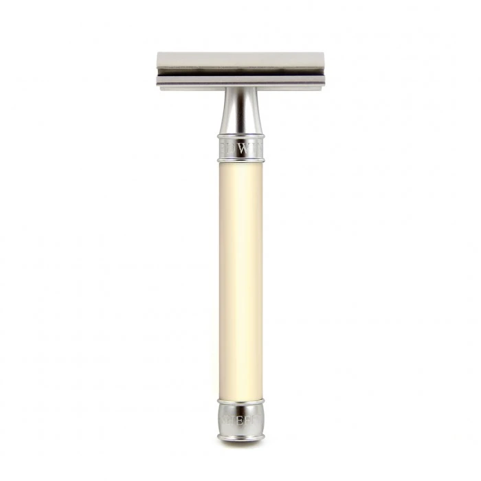 The sensational performance and finish of the Edwin Jagger 3ONE6 Stainless Steel Imitation Ivory DE Safety Razor has been achieved using revolutionary product design and advanced precision manufacturing techniques.