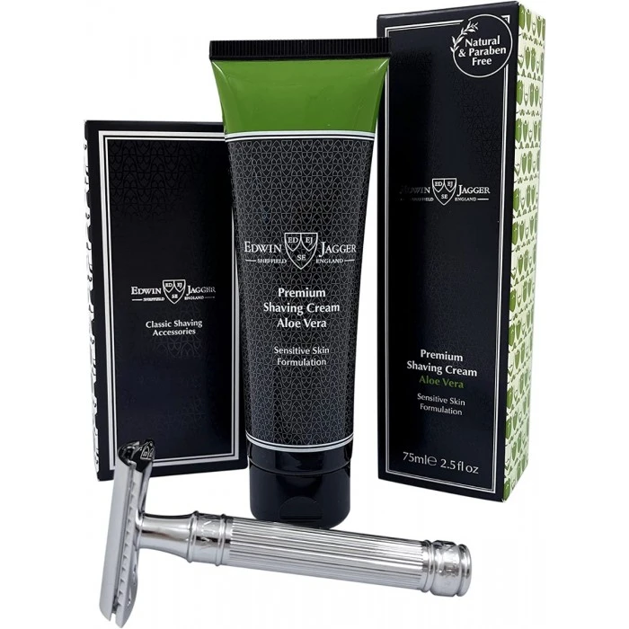 The accompanying Edwin Jagger Aloe Vera Shaving Cream is a soothing and natural preparation with a refreshing and delicate fragrance. Formulated for those with sensitive skin in mind, it harnesses the natural properties of aloe vera plants to calm and refresh the skin during shaving.