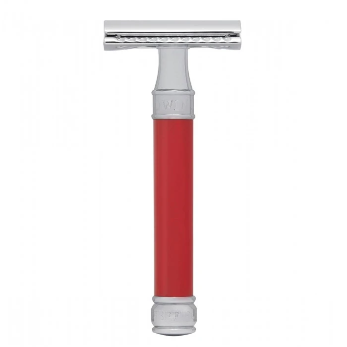 Manufactured using the finest-quality polycarbonate material, this razor has a sleek and eye-catching red design. The handle is then finished with an attractive scratch-resistant chrome plating with ‘EDWIN JAGGER’ and ‘SHEFFIELD, ENGLAND’ proudly engraved on the collar and cap respectively.
