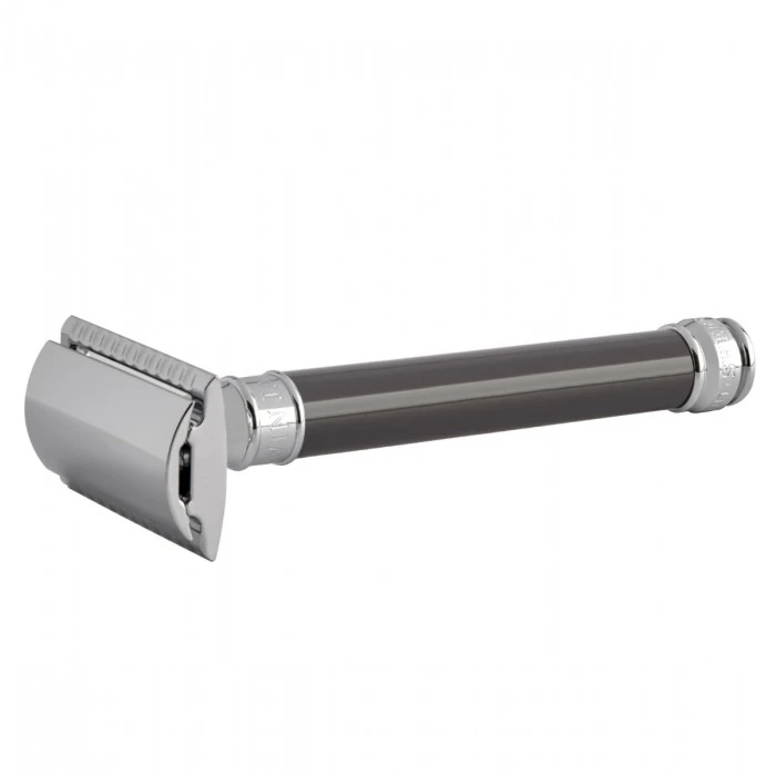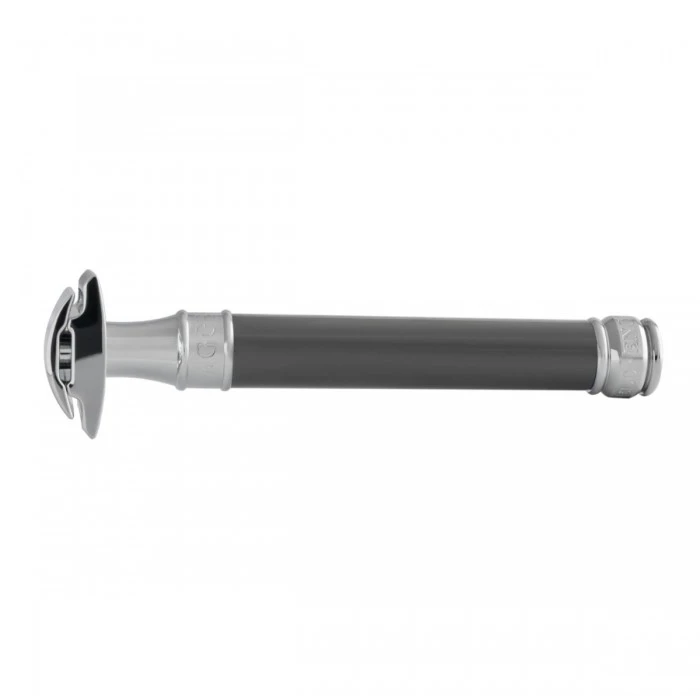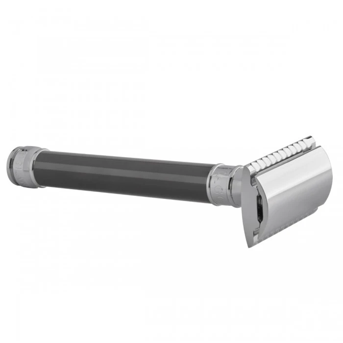 Edwin Jagger is Europe’s foremost manufacturer of luxury handmade shaving equipment. Edwin Jagger products are crafted and hand-assembled in Sheffield, England — a city known for its rich industrial history. This Edwin Jagger DE85 Long Grey DE Safety Razor (Closed Comb) is a traditional, waste-free double edge safety razor.