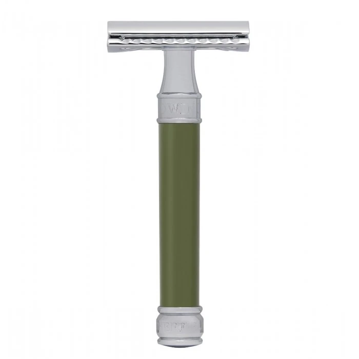 Manufactured using the finest-quality polycarbonate material, this razor has a sleek and eye-catching green design. The handle is then finished with an attractive scratch-resistant chrome plating with ‘EDWIN JAGGER’ and ‘SHEFFIELD, ENGLAND’ proudly engraved on the collar and cap respectively.