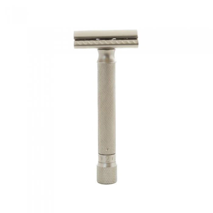 The razor is manufactured from brass frame and plated with high quality satin chrome. Find your ideal custom shave between 5 settings. Setting 1 is mildest, and setting 5 is most aggressive. Total length 100mm, weight 110g. Compatible with all double edge (DE) blades.